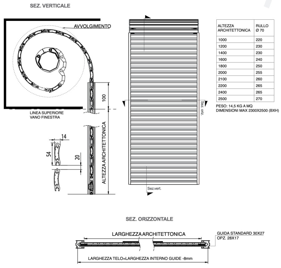 It is a safety roller shutter (approximately 14.5 kg per square meter) with a modern design. It blends elegance, functionality and resistance, enclosing the prerogatives of multiple shading systems in a single product.