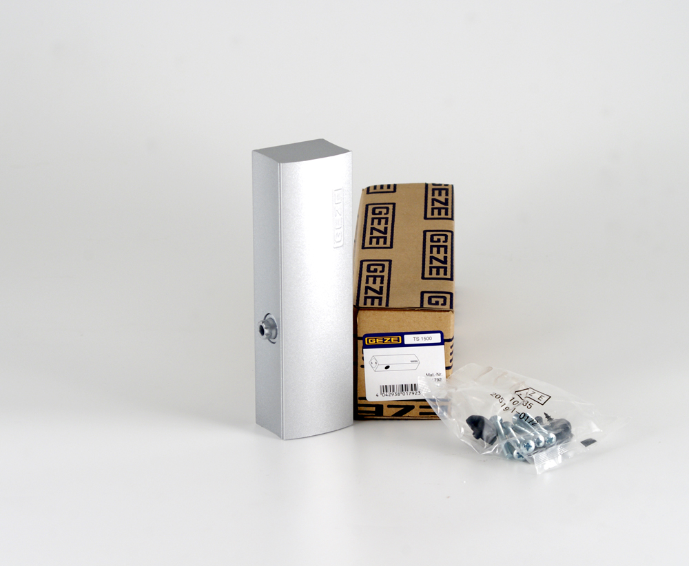 GEZE TS 1500 V with hold-arm with adjustable power, complete with hardware and installation template (mounting plate not included).