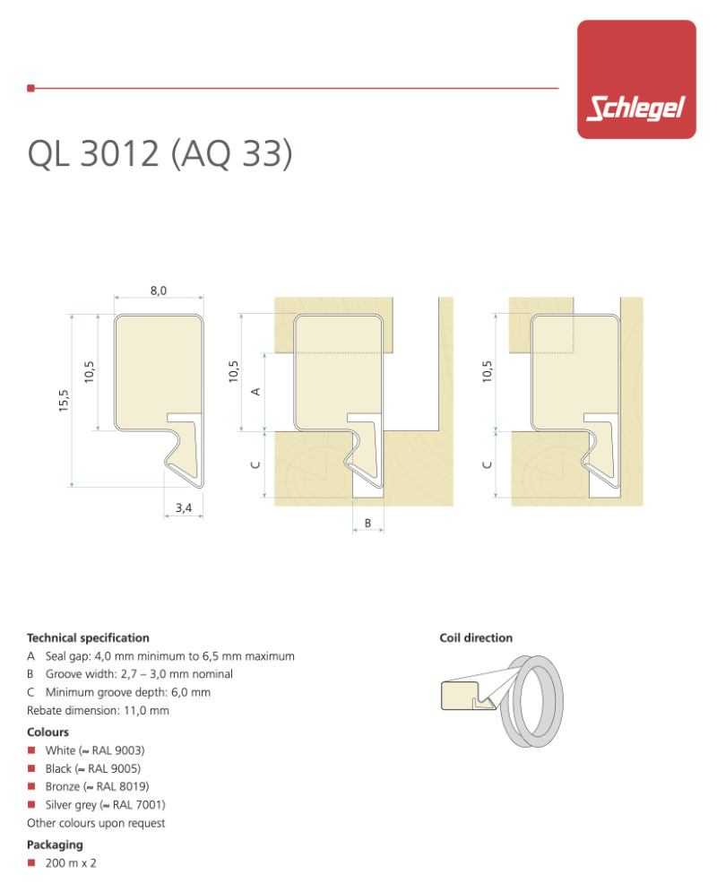 QL 3012 Schlegel Seal for Wooden Windows Excellent Sealing