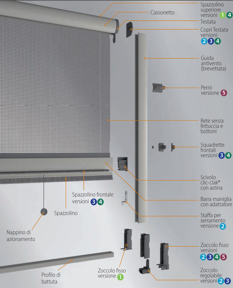 The components included in Revolux by Bettio, divided by versions (1 to 5):