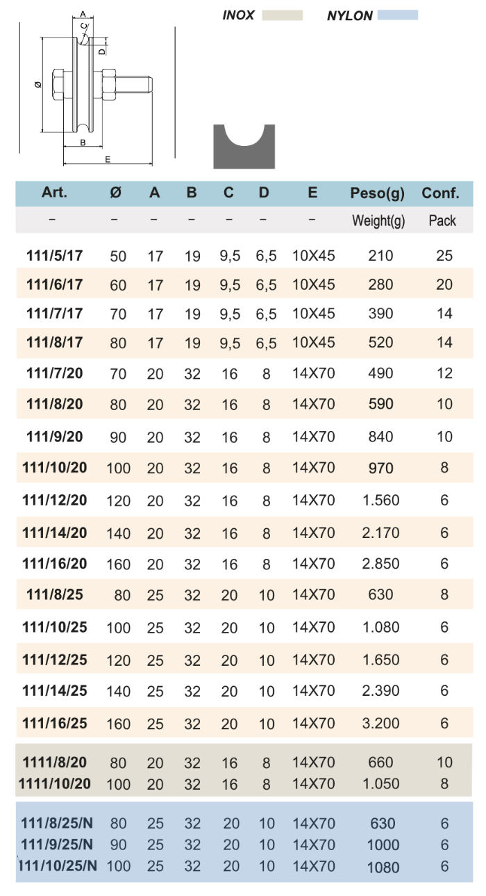 Round groove gate wheel material : choice of galvanized steel, cataphoresis, nylon or stainless steel (select the variant you want).