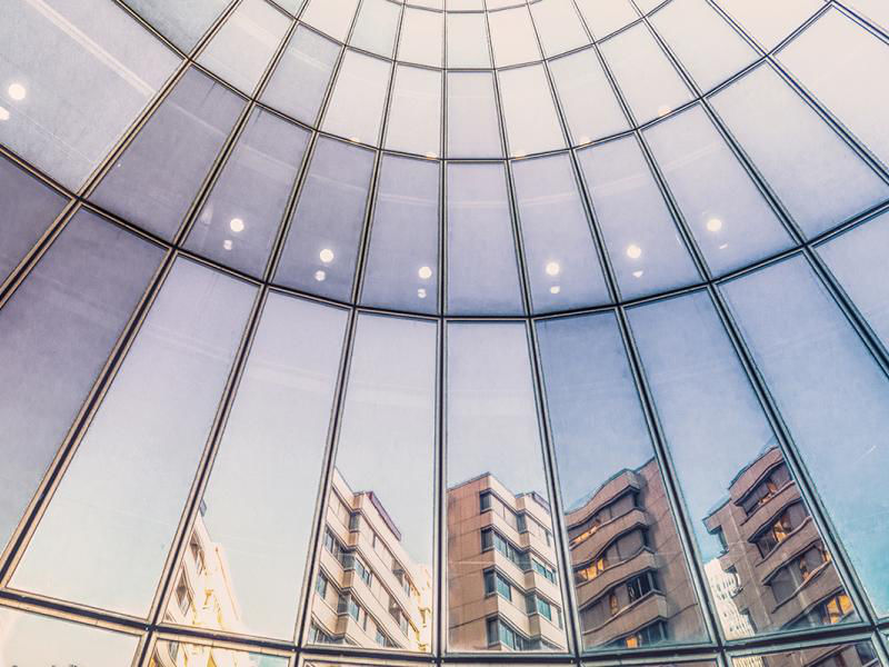 Alu 80 C film significantly reduces solar heat, while retaining much of the natural light. It provides good glare reduction, and its mirrored appearance provides privacy from prying eyes, allowing a modern touch to the exterior of a building.