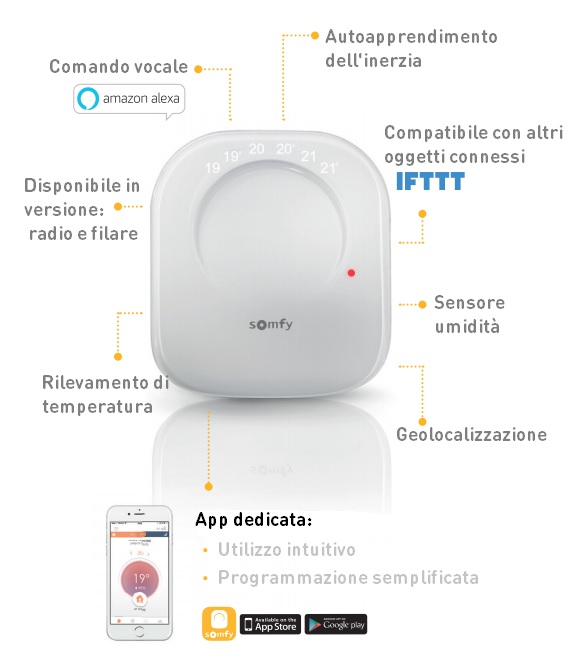 Somfy has designed a wifi connected thermostat that personalizes your comfort according to your habitat and habits.