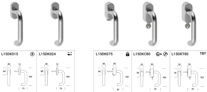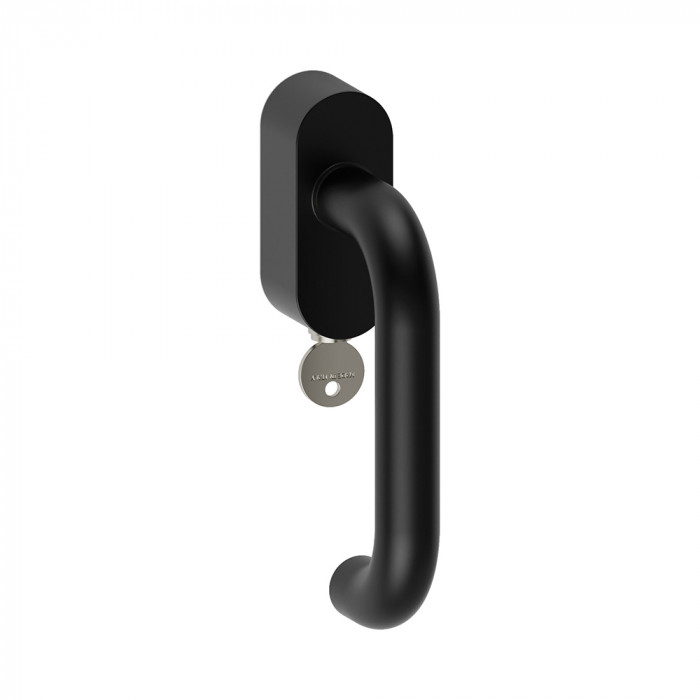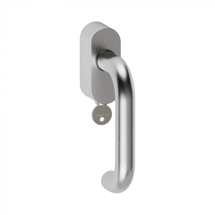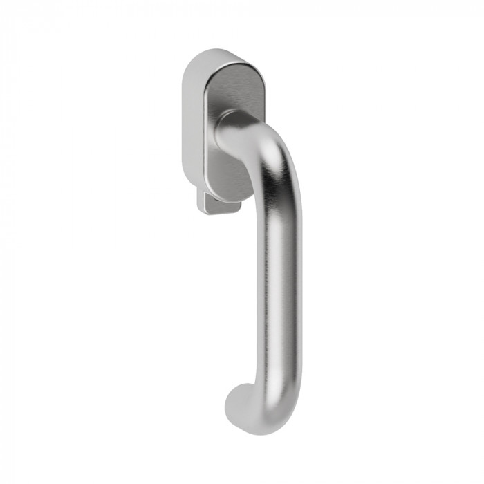 Stockholm Reguitti Inox is a modern window handle, with rounded lines and curved handle.