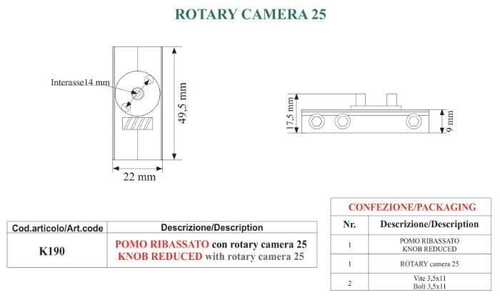 K190: maniglia POMO RIBASSATO con rotary camera 25