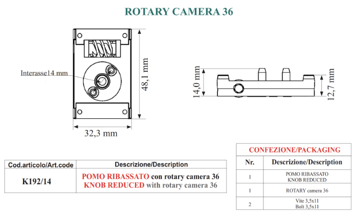 K192/14: maniglia POMO RIBASSATO con rotary camera 36