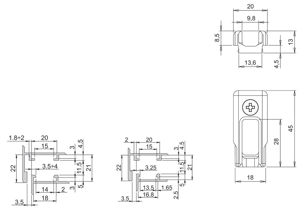 Dimensioned to receive the terminals operated by Cremona and bolts Giesse.