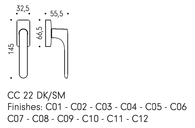 Maniglia Finestra ONE Q MOOD Colombo - Misure