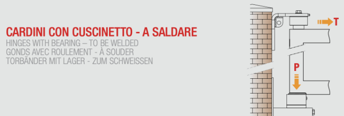 • Upper hinges to be welded with external pin (codes 850, 870 or 890);