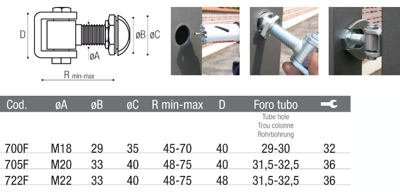 Sale of upper gate hinges with different sizes (select the article code you want).