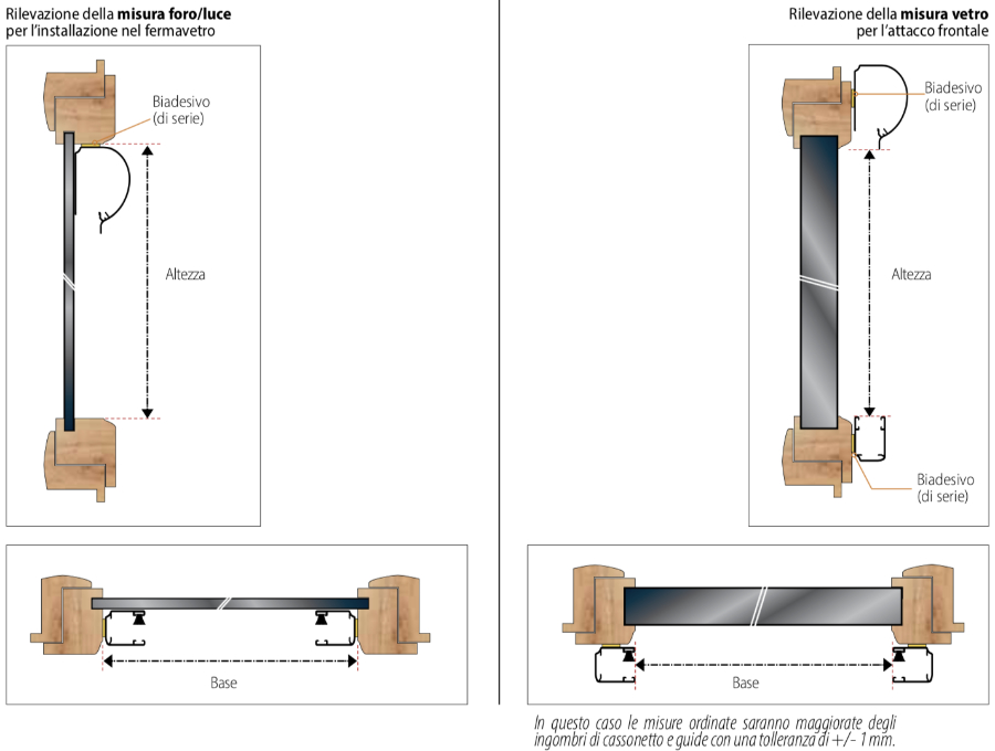 In the darkening versions it is necessary to consider that it can filter a small amount of light through the guide. Being a spring system, it includes special stops (called stop-system) inside the guide that allow the handle bar to be stopped at the desired height.