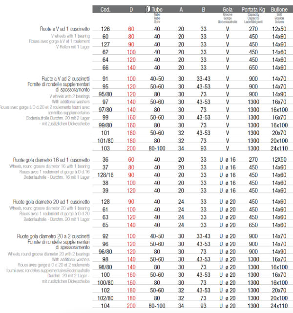 For installations in humid, dusty or particularly aggressive environments, the duration may decrease depending on the intensity of these. Periodic cleaning and maintenance facilitates correct operation over time, in particular the wheels with grease nipples allow greater protection of the bearing if checked periodically.